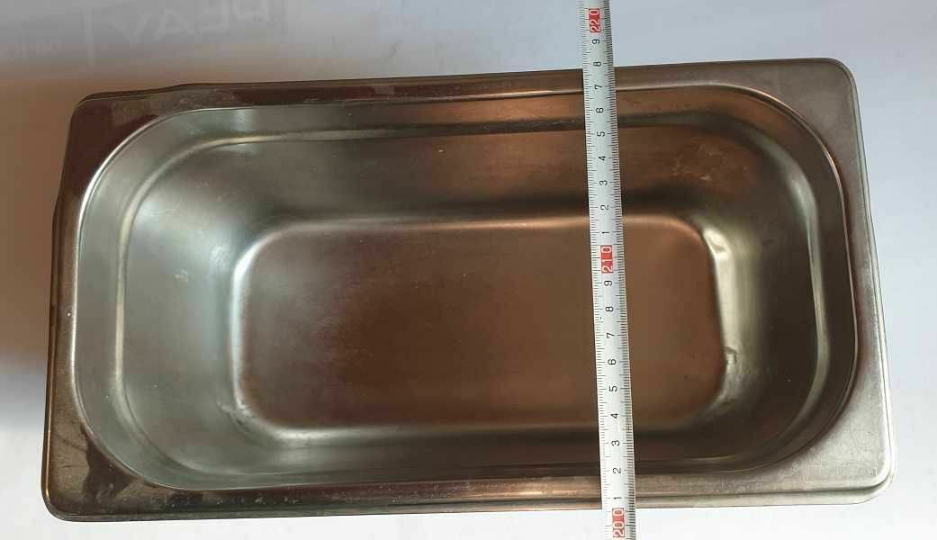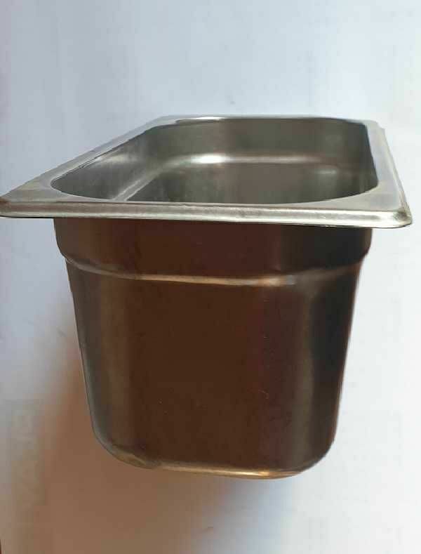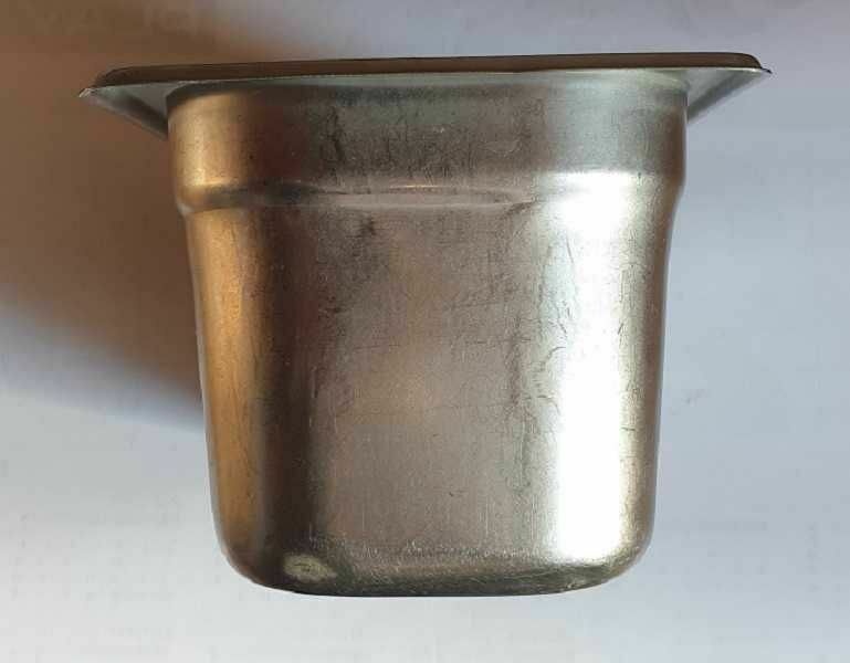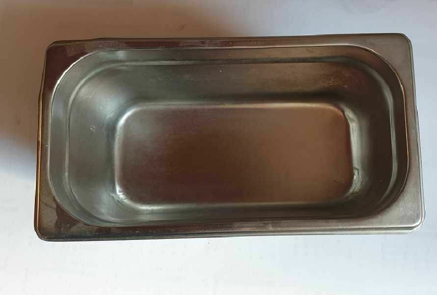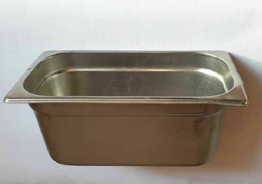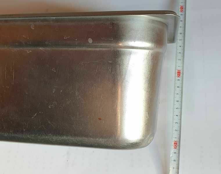 Używany pojemnik gastronomiczny ze stali nierdzewnej. Pojemnik jest w dobrym stanie, bez widocznych uszkodzeń. Może być wykorzystywany do przechowywania i transportu różnych produktów spożywczych w branży gastronomicznej.Wymiary na zdjęciach.Ilość pojemników ograniczona.Sprawdź zainteresowanie tym ogłoszeniem